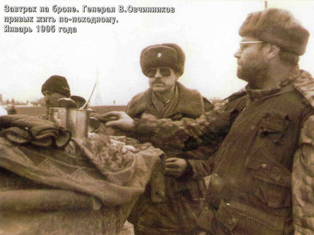 В НОЧЬ на 12 января 1995-го мы сидели с генералом Овчинниковым в его “кашээмке” под Грозным. Когда в одном из моих вопросов прозвучала фамилия Дудаева, генерал вдруг сказал: “А ведь я с ним встречался, был у него в кабинете”. Я еще ближе пододвинул свой диктофон.
